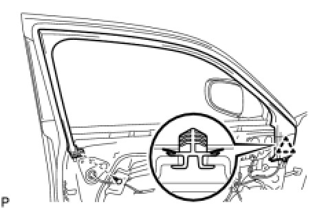 (a) Engage the 4 claws and install the front door inner glass weatherstrip.
