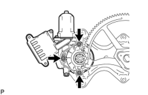 (a) Using a "TORX" driver (T25), install the front power window regulator motor sub-assembly with the 3 screws.