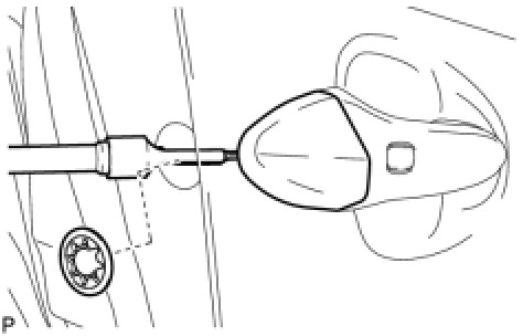(b) Using a "TORX" socket wrench (T30), install the front door lock cylinder with the screw.