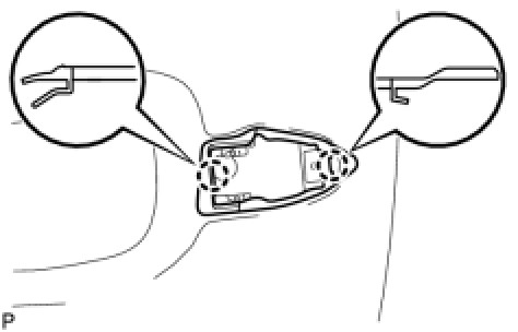 (d) Engage the 2 claws to install the front door outside handle cover to the front door lock cylinder.