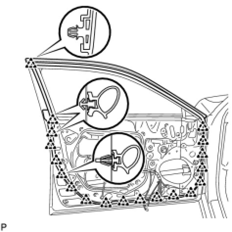 (a) Engage the 19 clips and install the front door weatherstrip.