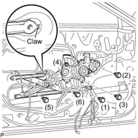 (d) Tighten the 6 bolts in the order shown in the illustration to install the front window regulator.