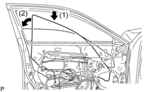 (a) Insert the front door glass sub-assembly into the front door panel along the front door glass run as indicated in the order of the arrows in the illustration.