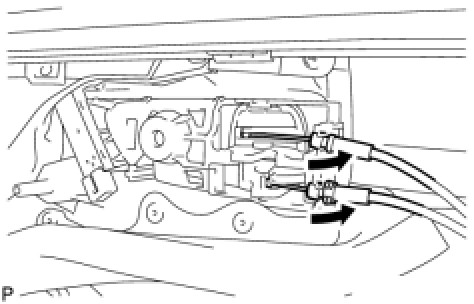 (a) Connect the front door lock remote control cable and front door inside locking cable to the front inside handle.