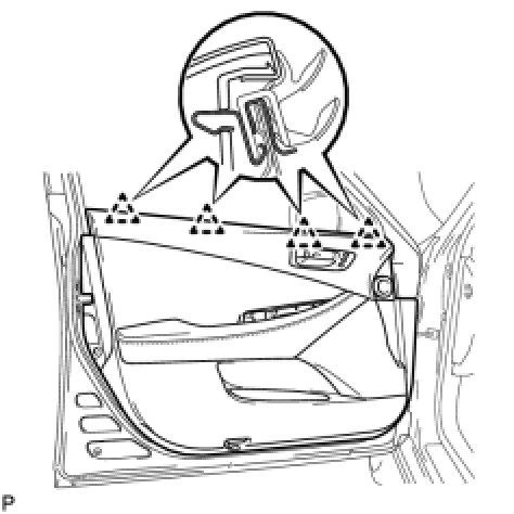(b) Engage the front door trim board with the 4 clips of the front door inner glass weatherstrip.