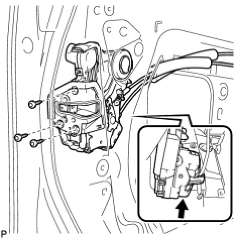 (e) Using a "TORX" socket wrench (T30), install the front door lock assembly with the 3 screws.