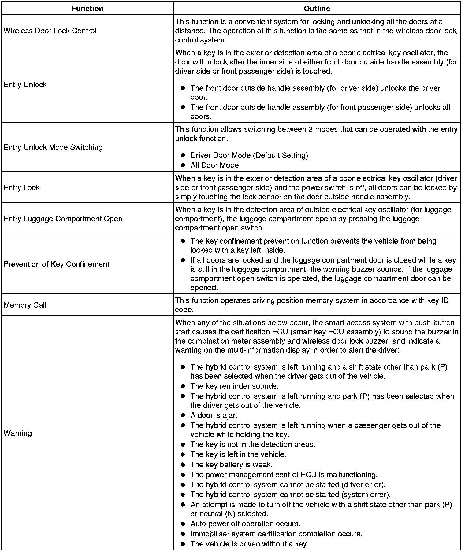(a) In addition to conventional mechanical key and wireless door lock control functions, the smart access system with push-button start enables door locking/unlocking and hybrid control system starting without operating the key. The only requirement is that the key is in the user's possession.