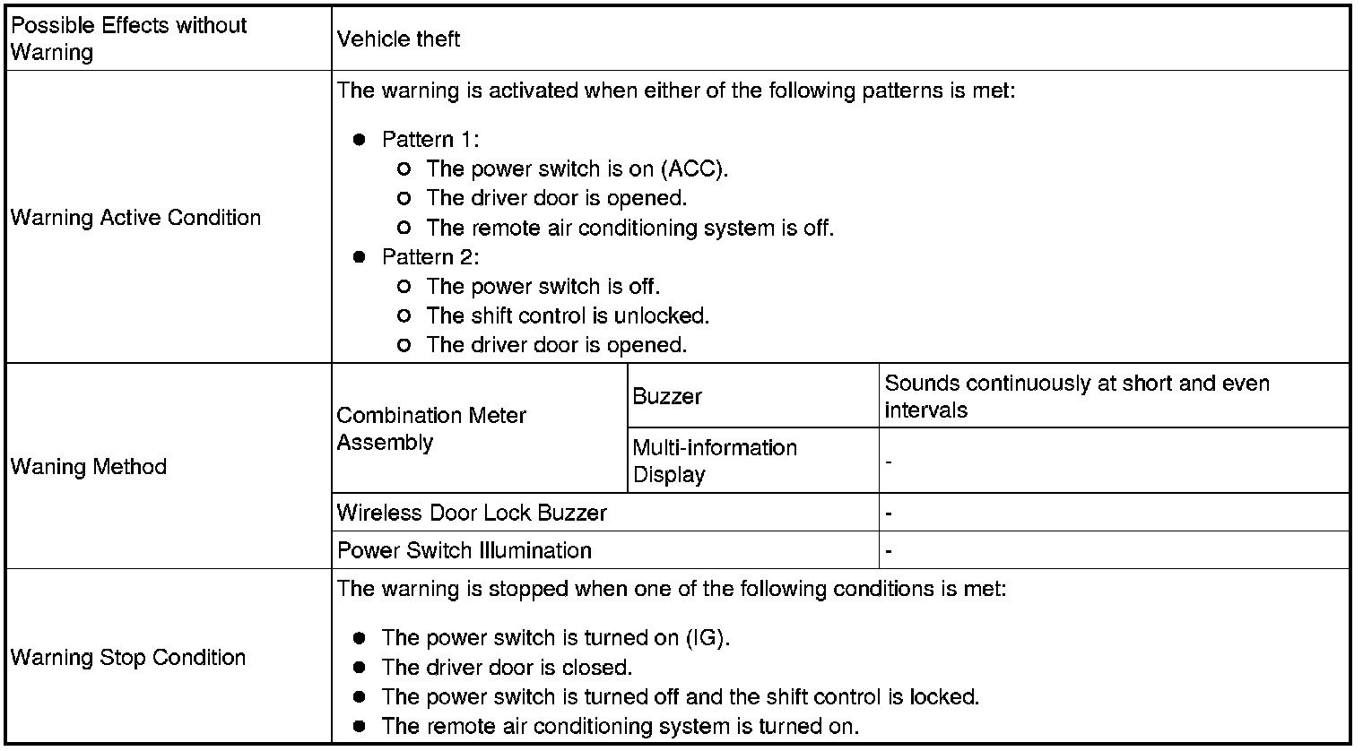 When the driver door is open, the driver turns the power switch from on (IG) to off and attempts to leave the vehicle.