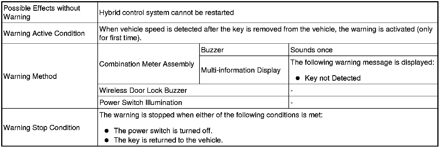 * When the hybrid control system is left running, a passenger leaves the vehicle while holding the key.