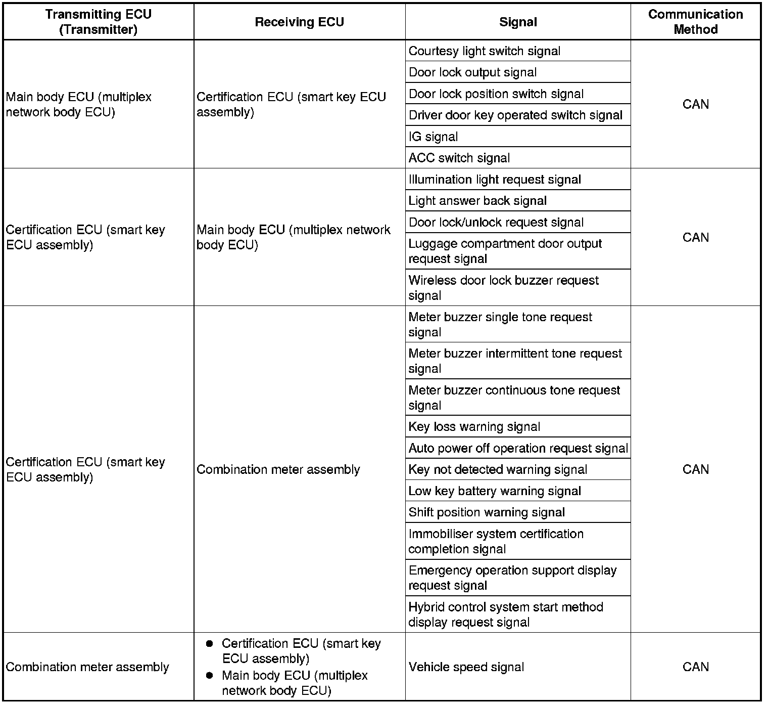 Communication Table