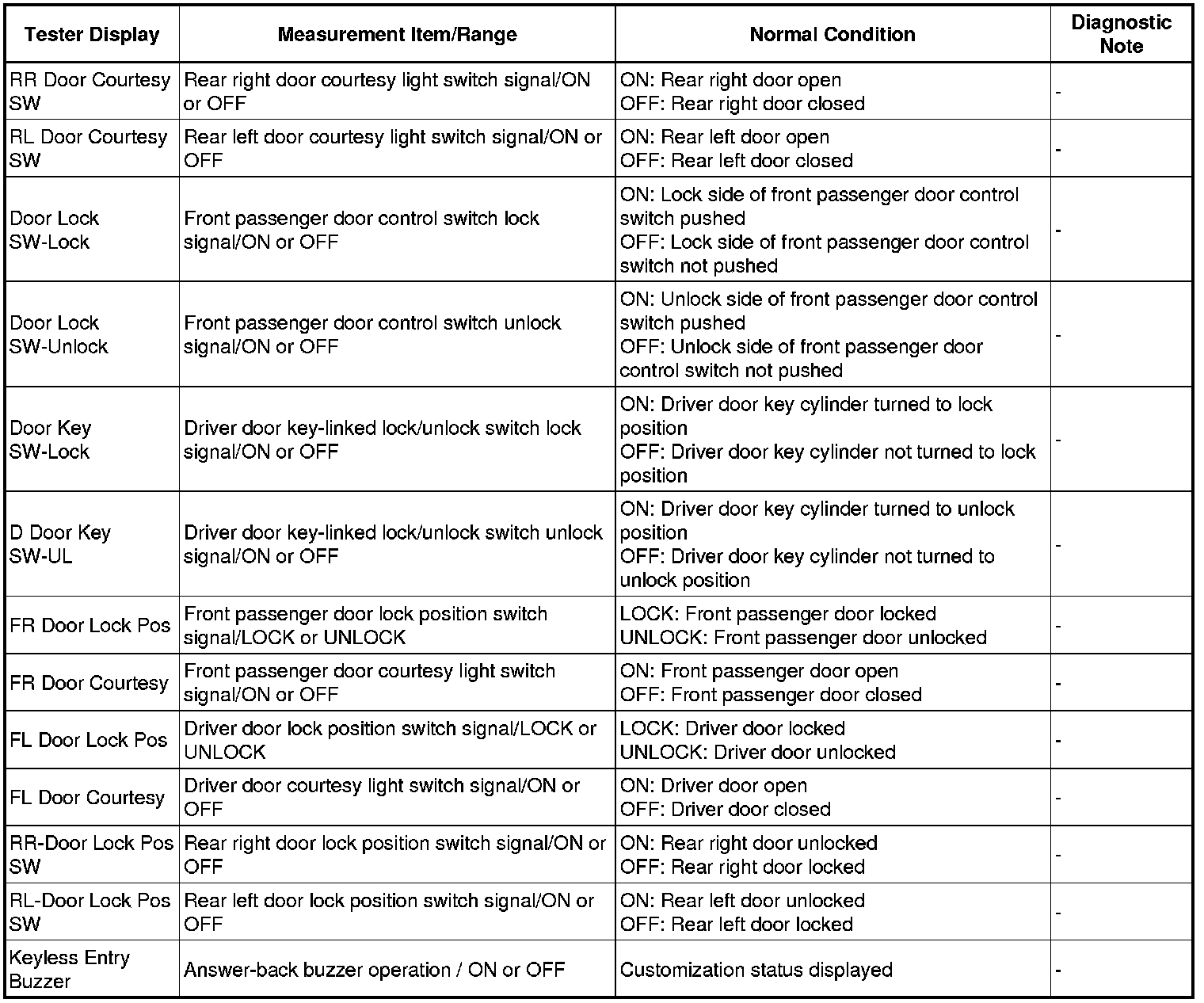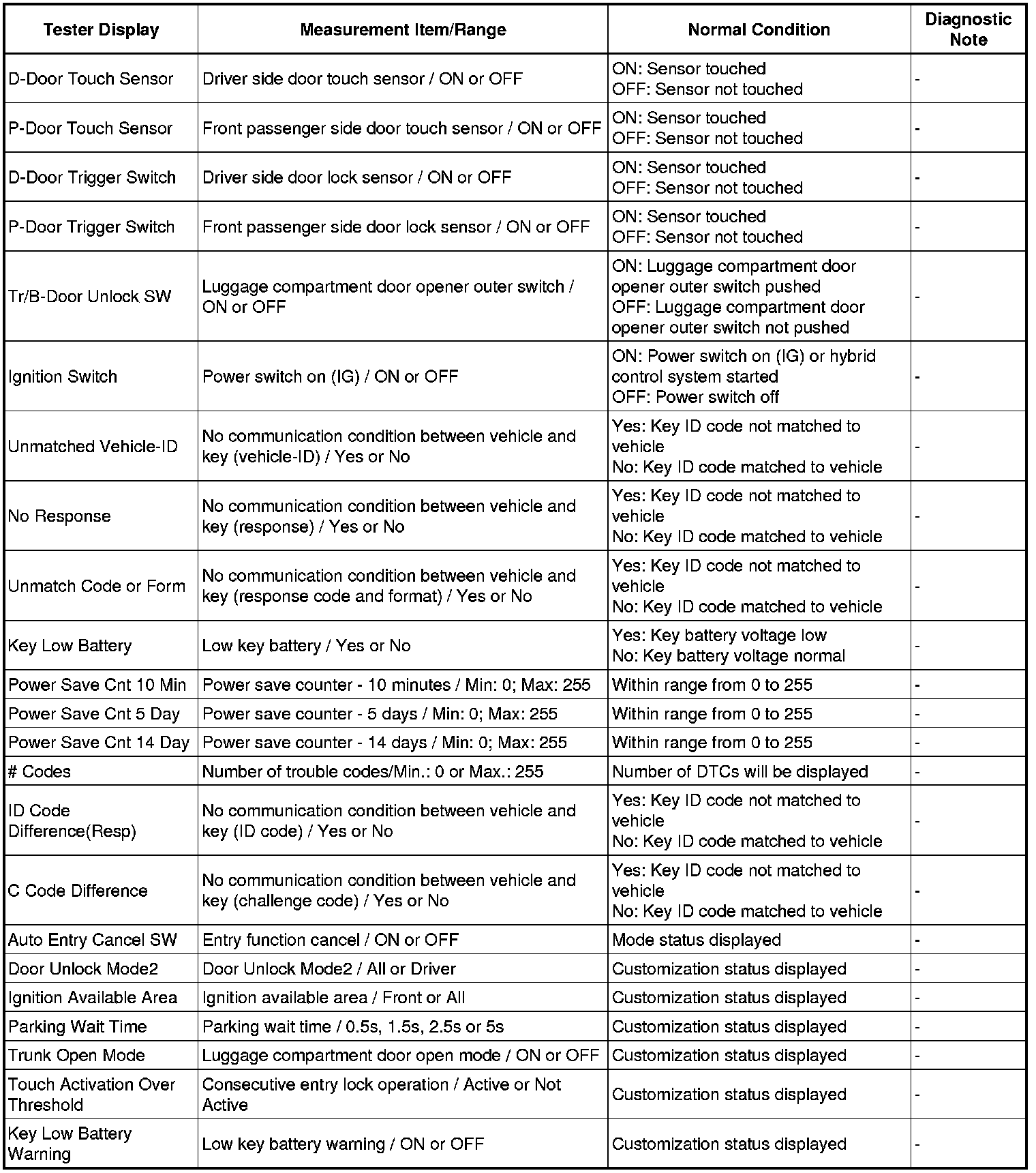 THEFT DETERRENT / KEYLESS ENTRY: SMART ACCESS SYSTEM WITH PUSH-BUTTON START (for Entry Function): DATA LIST / ACTIVE TEST