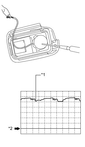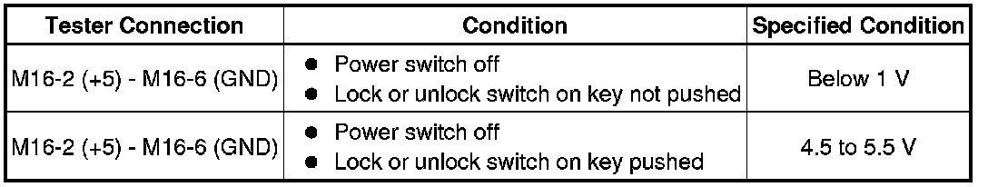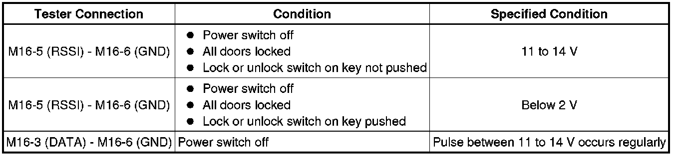 When measuring the battery voltage, while operating the lock switch of a door outside handle assembly, bring the key within the entry operating range to perform the measurement. For the entry operating range, refer to System Description System Description.