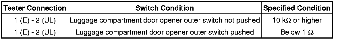 NG -- INSPECT LUGGAGE COMPARTMENT DOOR OPENER OUTER SWITCH