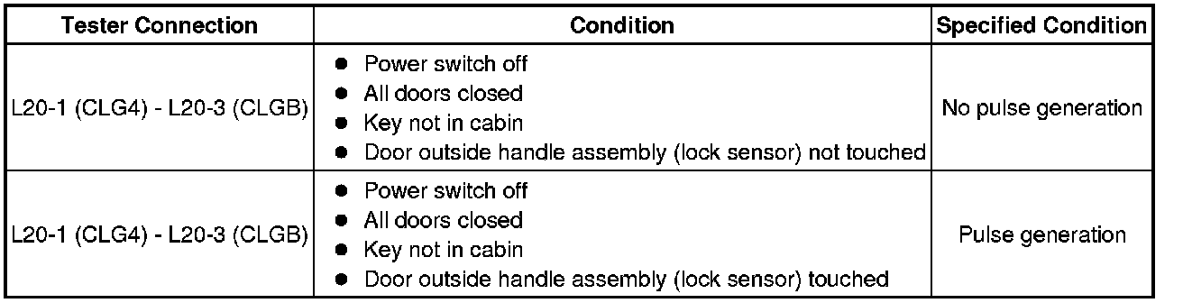 (b) Check for pulses according to the value(s) in the table below.