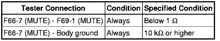 AUDIO / VIDEO: AUDIO AND VISUAL SYSTEM (w/o Navigation System): Mute Signal Circuit between Radio Receiver and Stereo Component Amplifier