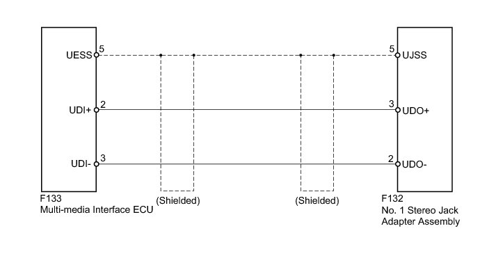 The No. 1 stereo jack adapter assembly sends the sound data signal of an external device to the multi-media interface ECU through this circuit.