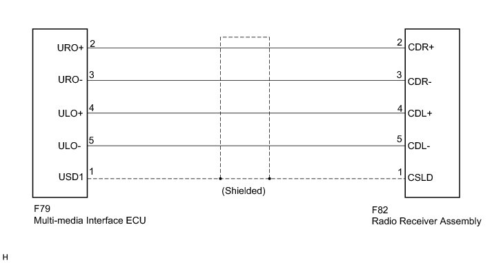 AUDIO / VIDEO: AUDIO AND VISUAL SYSTEM (w/o Navigation System): Sound Signal Circuit between Radio Receiver and Multi-media Interface ECU