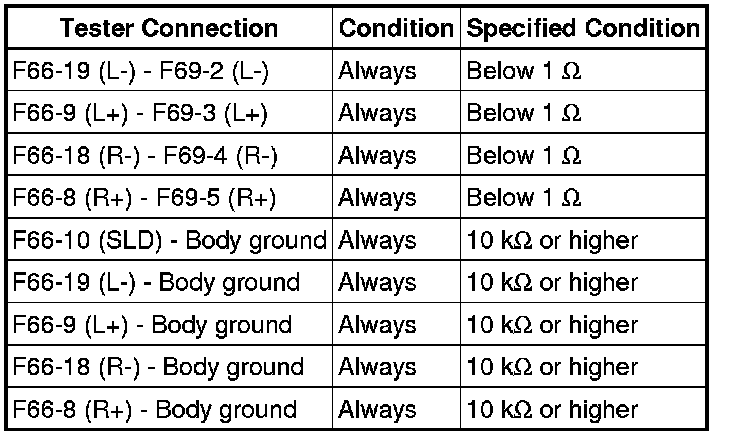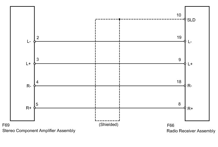 AUDIO / VIDEO: AUDIO AND VISUAL SYSTEM (w/o Navigation System): Sound Signal Circuit between Radio Receiver and Stereo Component Amplifier