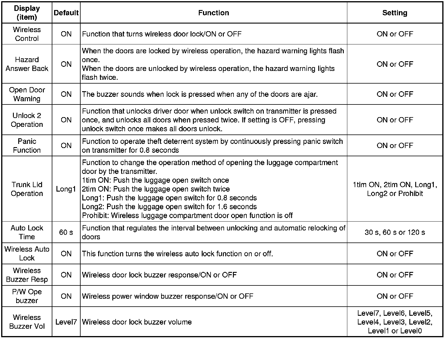 (e) Select the setting by referring to the table below.
