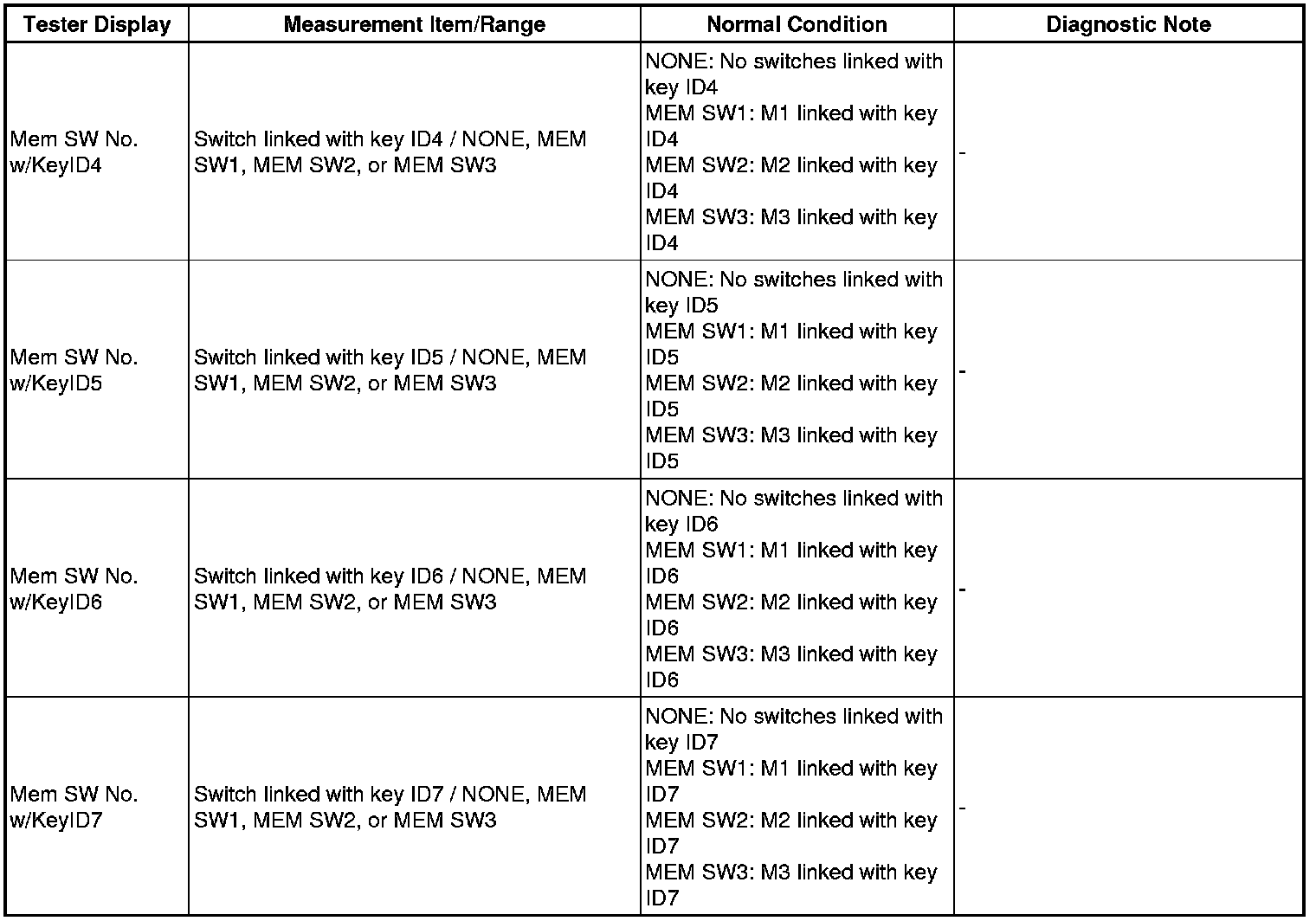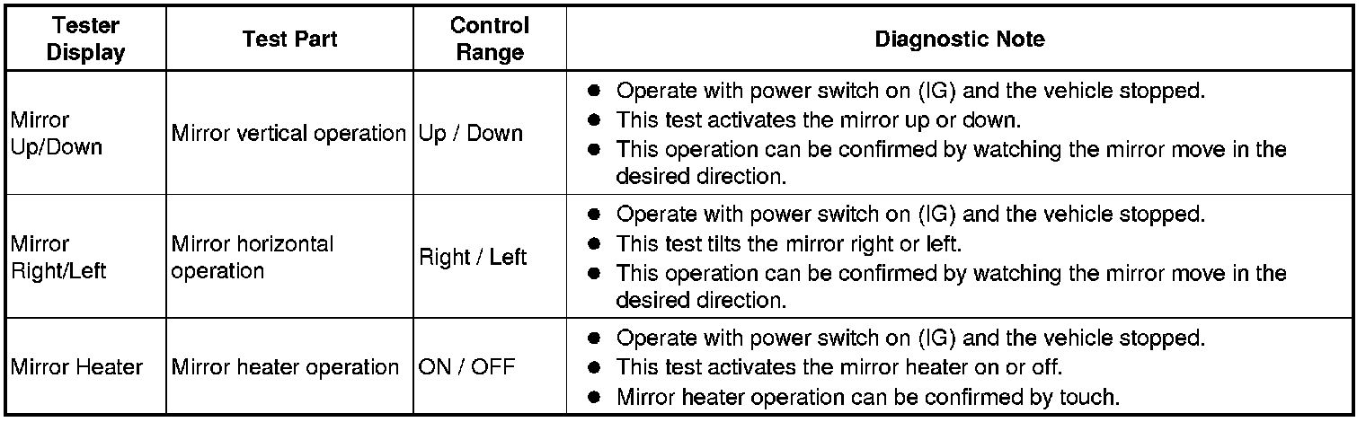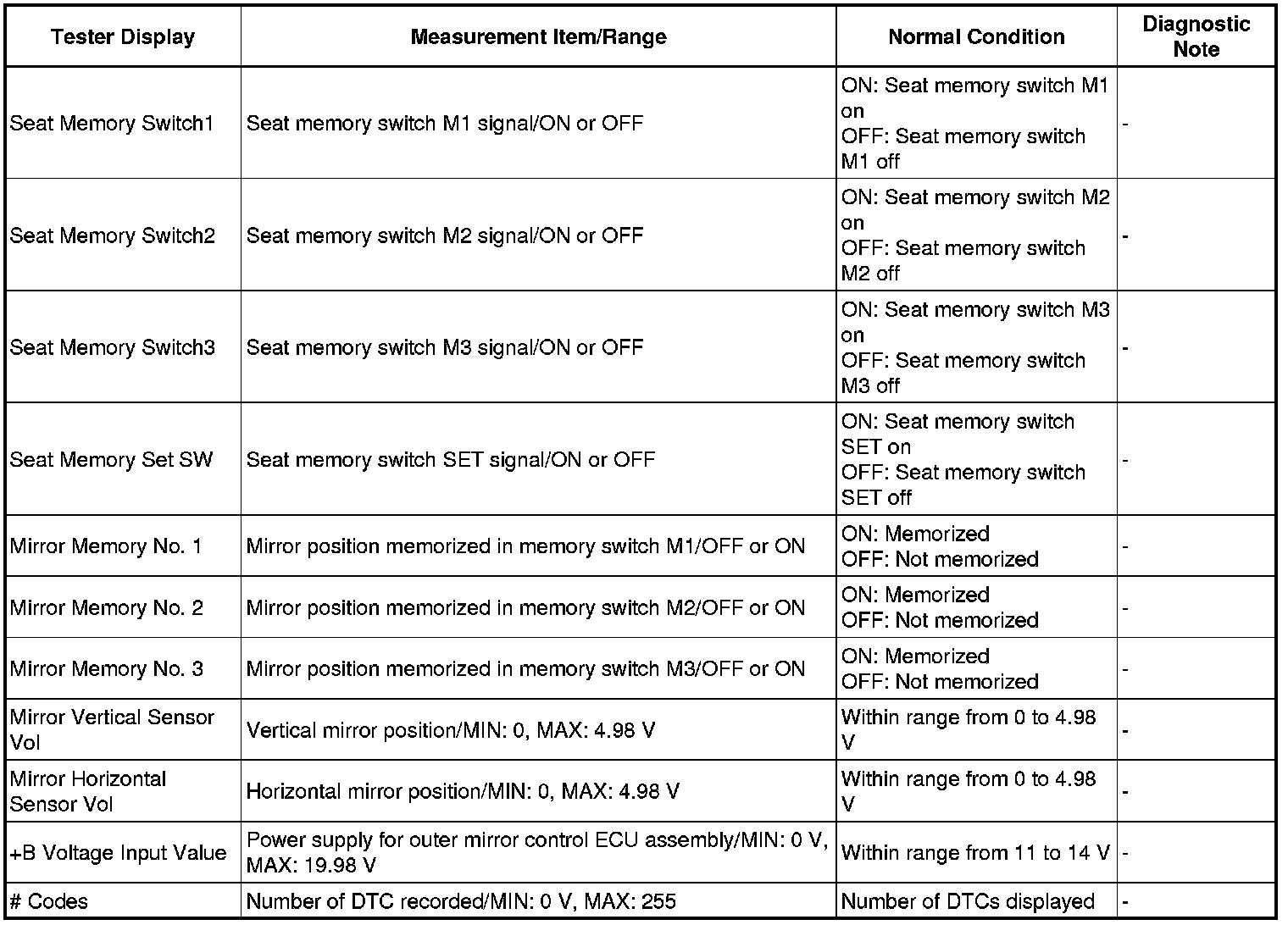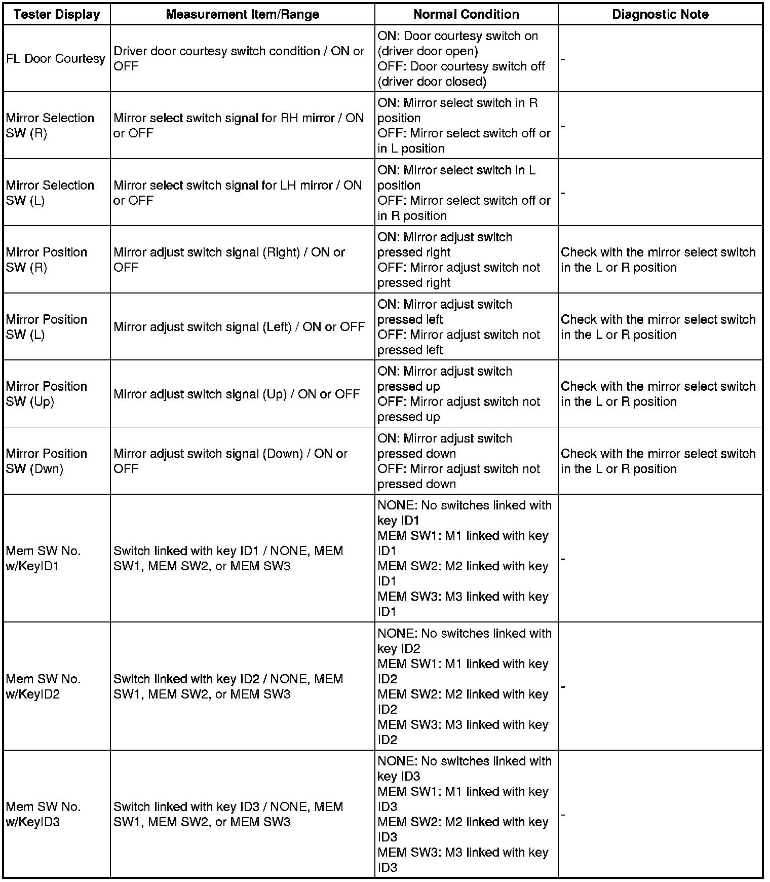MIRROR (EXT): POWER MIRROR CONTROL SYSTEM (w/ Memory): DATA LIST / ACTIVE TEST