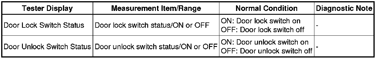 Using the Techstream to read the Data List allows the values or states of switches, sensors, actuators and other items to be read without removing any parts. This non-intrusive inspection can be very useful because intermittent conditions or signals may be discovered before parts or wiring is disturbed. Reading the Data List information early in troubleshooting is one way to save diagnostic time.