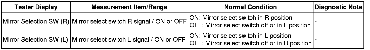 MIRROR (EXT): POWER MIRROR CONTROL SYSTEM (w/ Memory): Reverse Shift-linked Function of Power Mirrors does not Operate