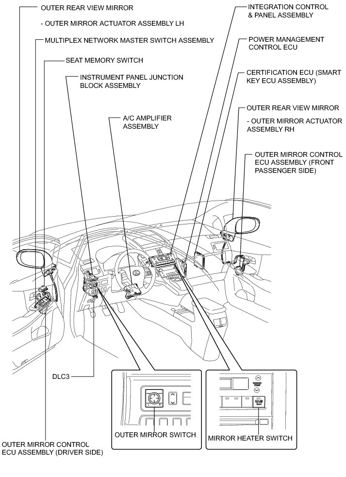 MIRROR (EXT): POWER MIRROR CONTROL SYSTEM (w/ Memory): PARTS LOCATION