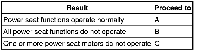 B -- GO TO OTHER FLOW CHART (Front Power Seat does not Operate with Front Power Seat Switch) Front Power Seat Does Not Operate With Front Power Seat Switch