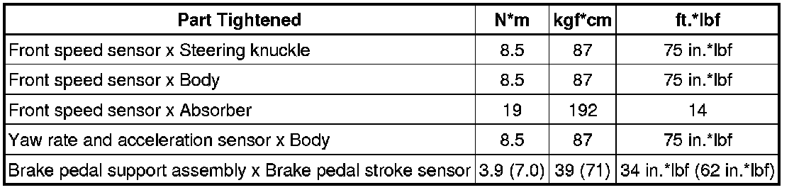 SPECIFICATIONS: BRAKE CONTROL / DYNAMIC CONTROL SYSTEMS: TORQUE SPECIFICATIONS