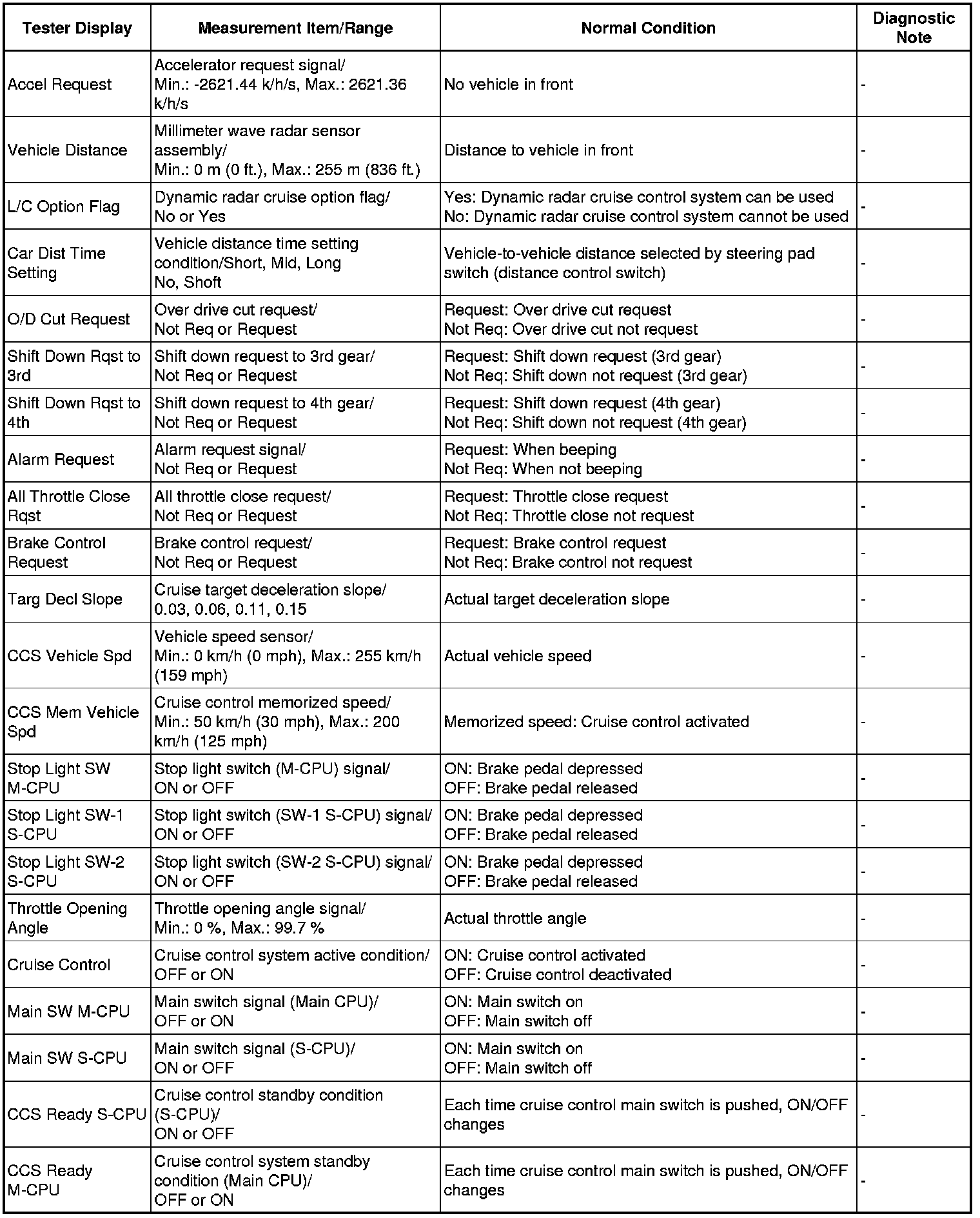 CRUISE CONTROL: DYNAMIC RADAR CRUISE CONTROL SYSTEM: DATA LIST / ACTIVE TEST