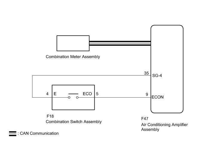 When selecting ECO mode, the switch operation signal is sent to the air conditioning amplifier assembly. Following this, ECO mode control is activated for the heater and air conditioning system.