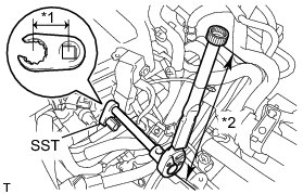 * This torque value is effective when SST is parallel to the torque wrench Service Precautions.