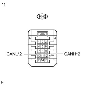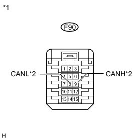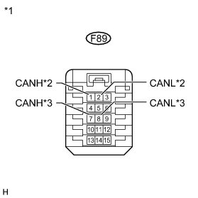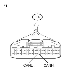 * The resistance must be measured after the CAN No. 1 junction connector branch wire connected ECU and sensor connectors are disconnected.