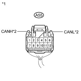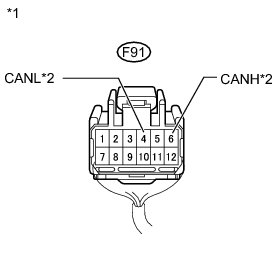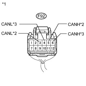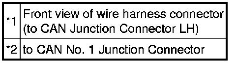 * The resistance must be measured after the main wire connected ECUs (hybrid vehicle control ECU and combination meter), CAN No. 1 junction connector, junction connector LH and RH are reconnected.