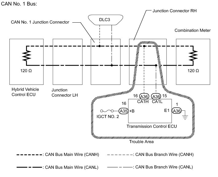 1. CHECK CAN BUS WIRE FOR DISCONNECTION (TRANSMISSION CONTROL ECU BRANCH WIRE)