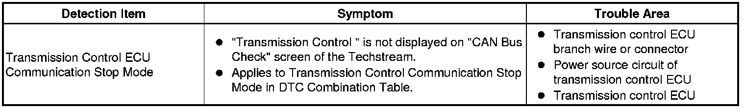 NETWORKING: CAN COMMUNICATION SYSTEM: Transmission Control ECU Communication Stop Mode