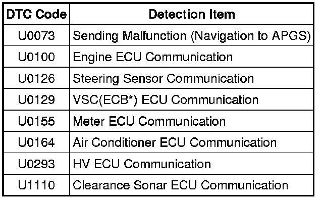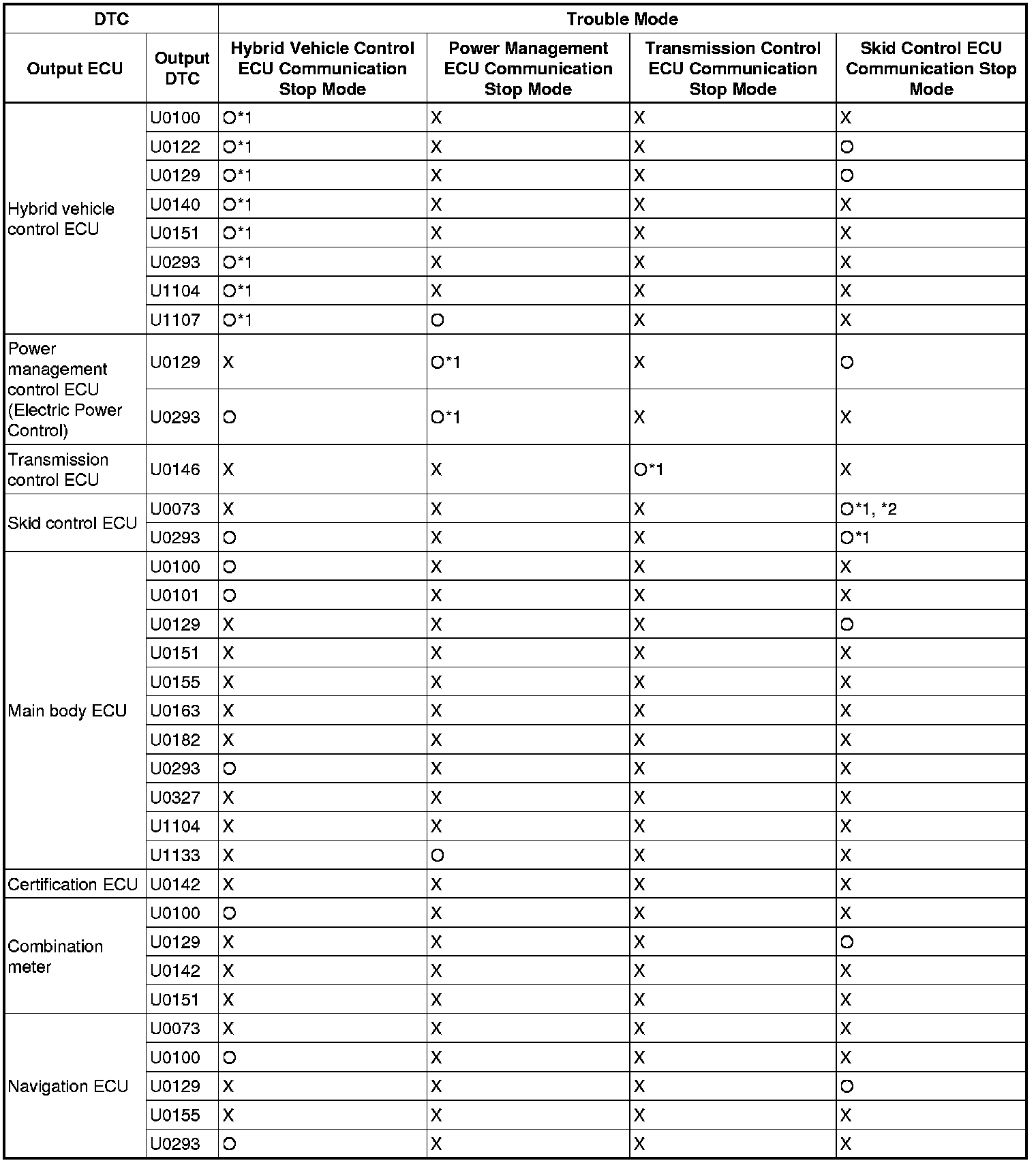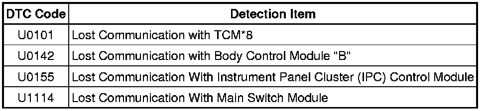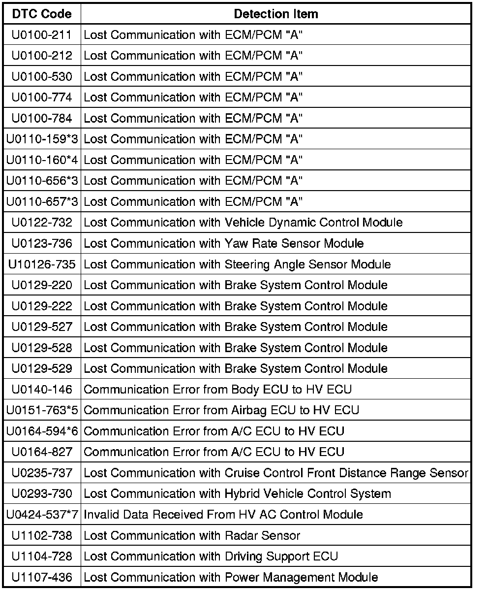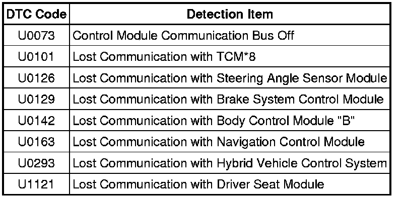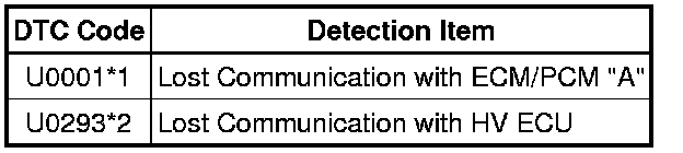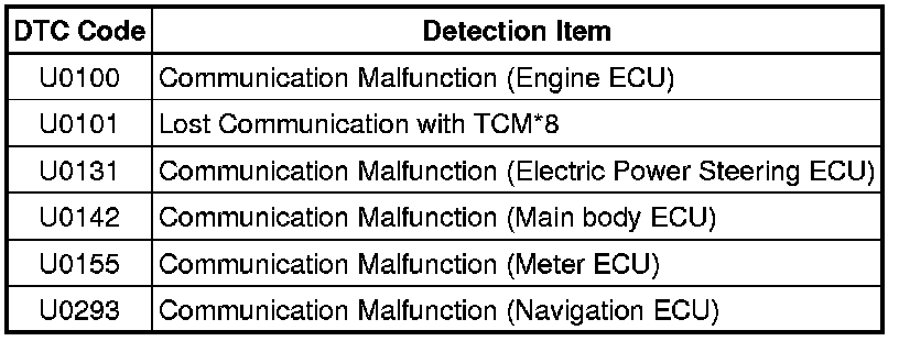 * *2: DTC U0100, U0123, U0124 and U0126 are not stored when DTC U0073 has already been stored.