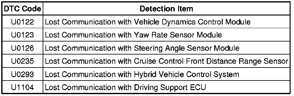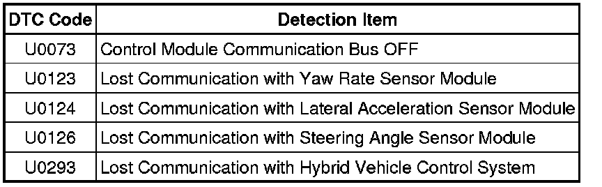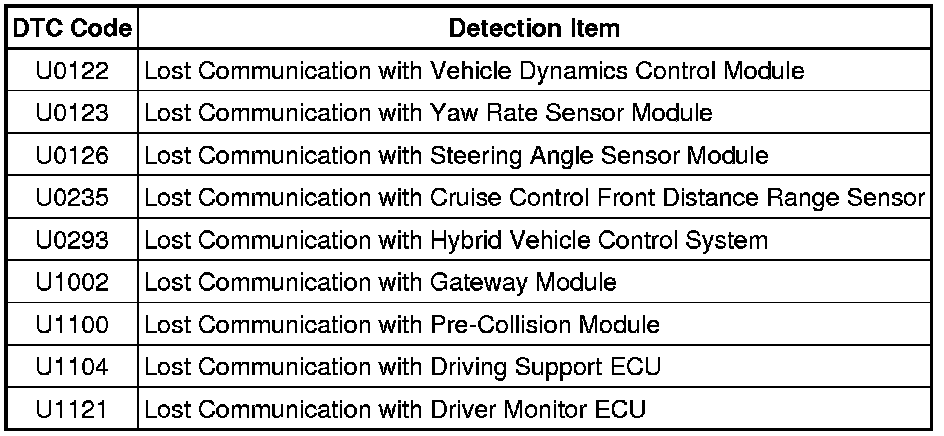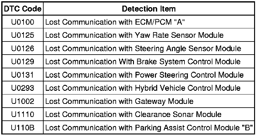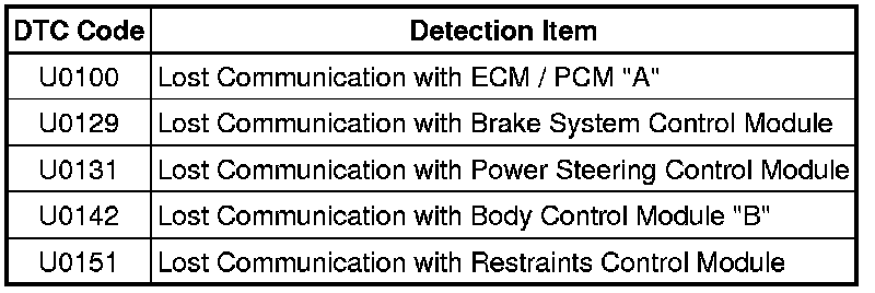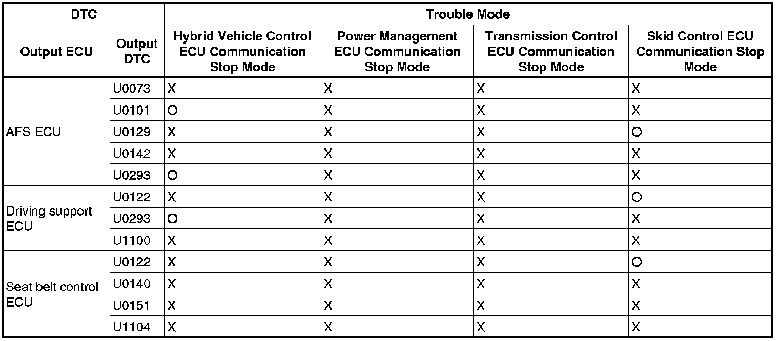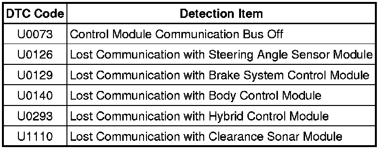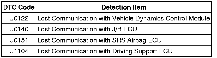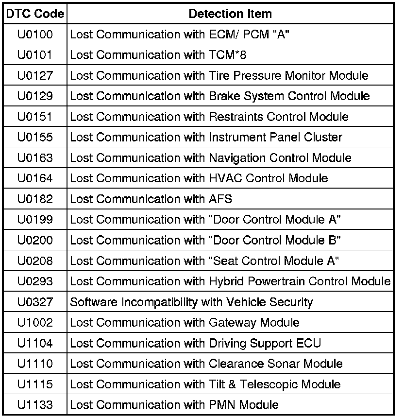 * *2: DTC U0100, U0123, U0124 and U0126 are not stored when DTC U0073 has already been stored.
