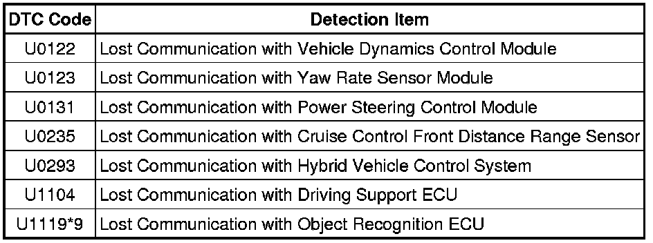 * *9: If U1119 is output alone, CAN communication is normal. Refer to Lane-keeping Assist System Lane-Keeping Assist System.