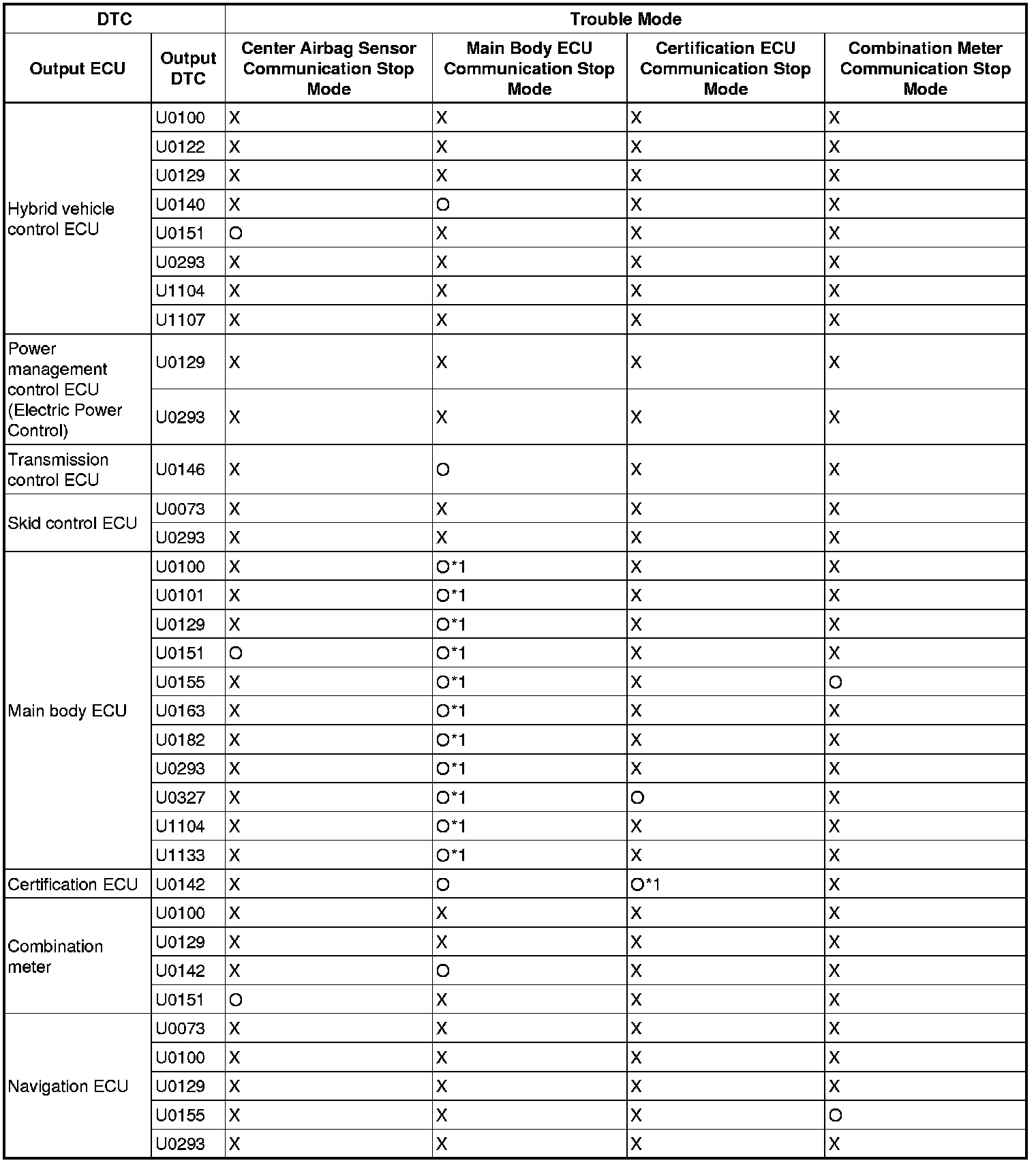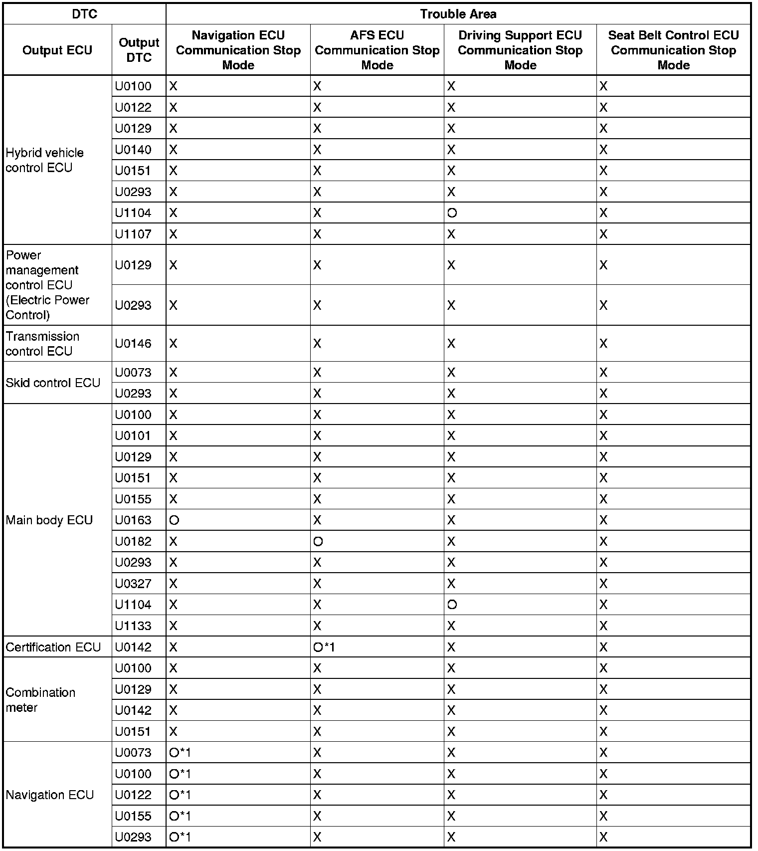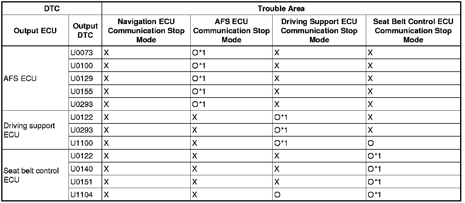 * *1: DTC is not output during communication error, but will be output as a history DTC (past DTC) when communication returns to normal.