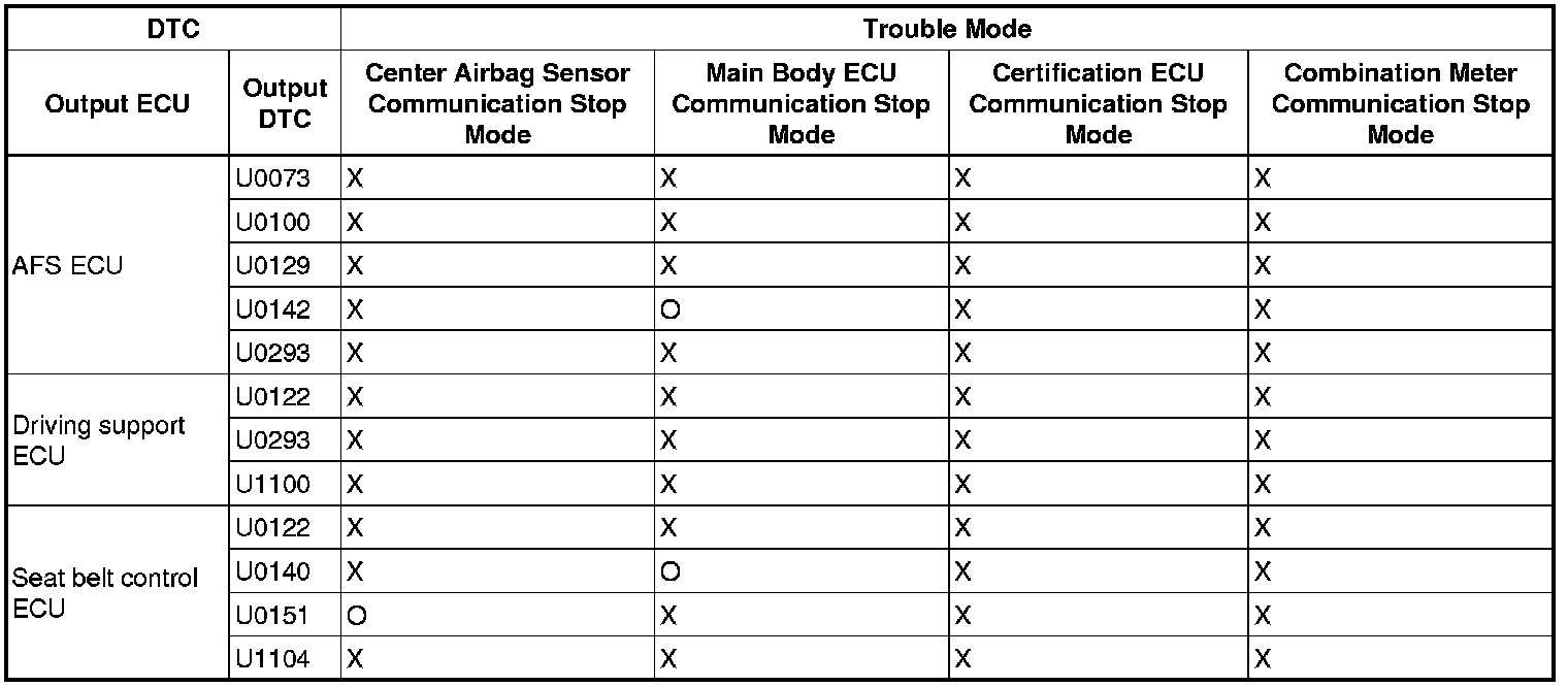 * X: Not set or may be set according to the malfunctioning part when one side of the CAN branch wire opens.