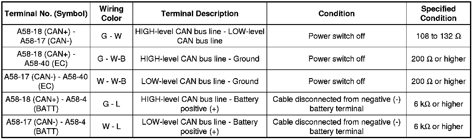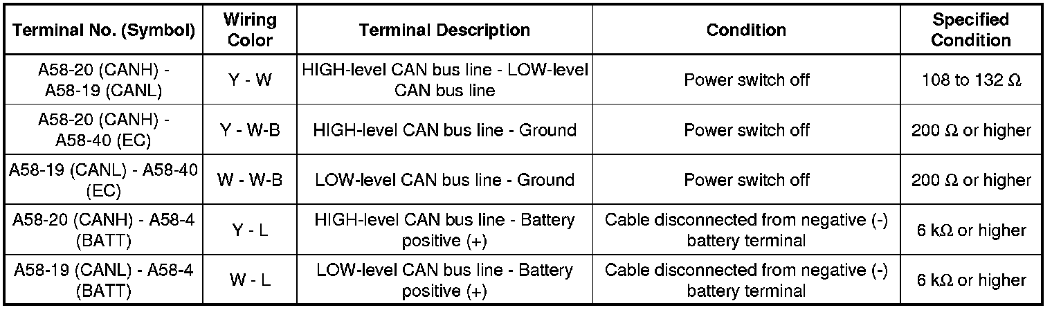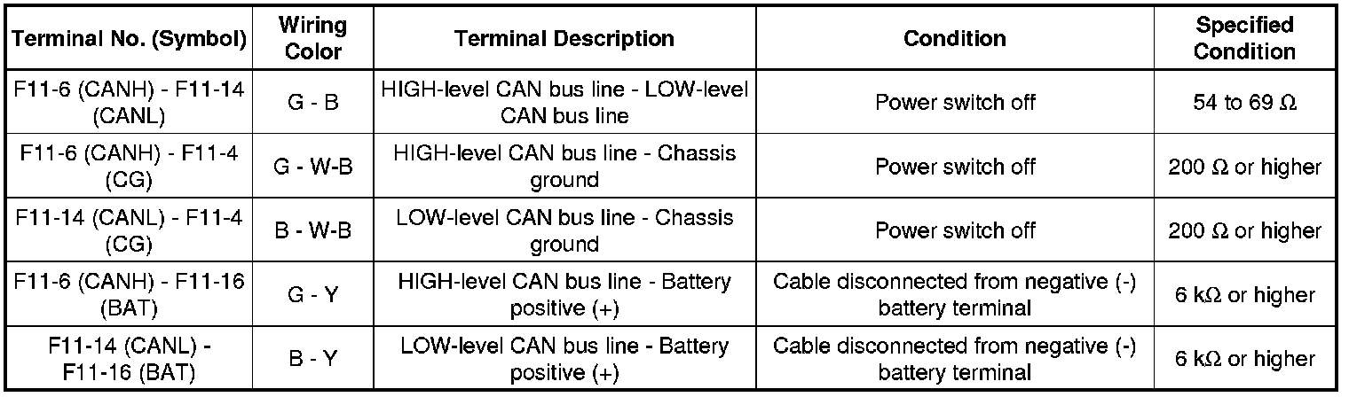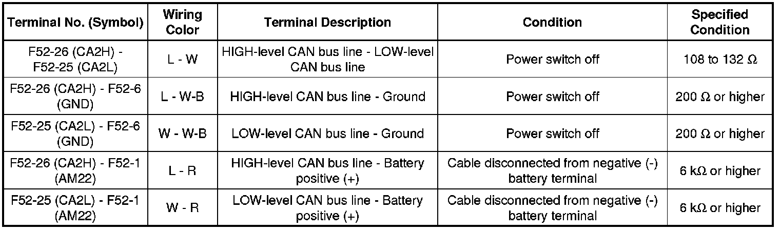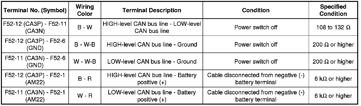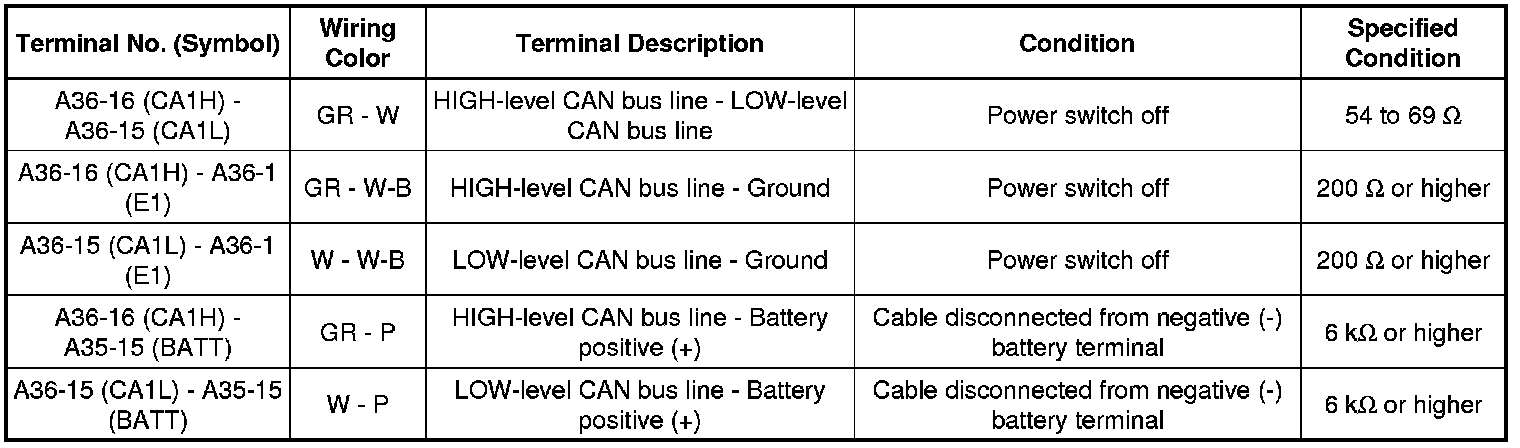 * Turn the power switch off before measuring the resistances between CAN bus main wires and between CAN bus branch wires.