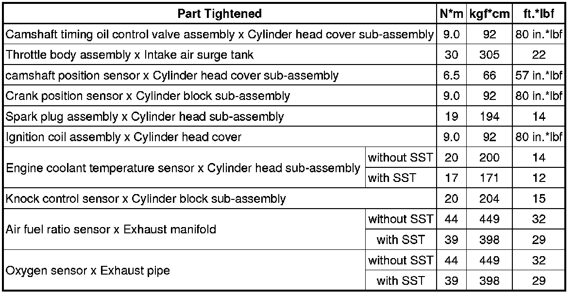 SPECIFICATIONS: 2AZ-FXE ENGINE CONTROL: TORQUE SPECIFICATIONS