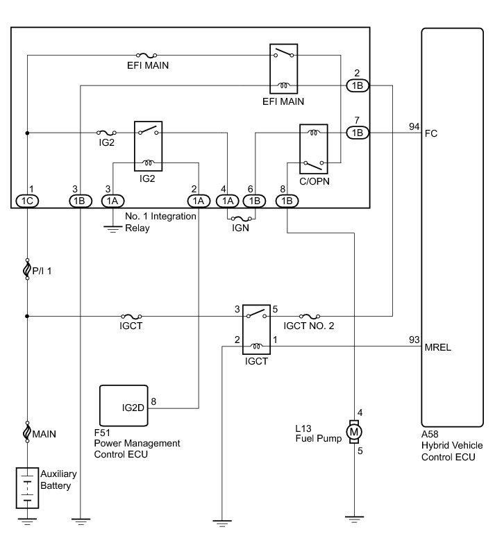 NG -- INSPECT NO. 1 INTEGRATION RELAY (C/OPN, EFI MAIN AND IG2 RELAY)