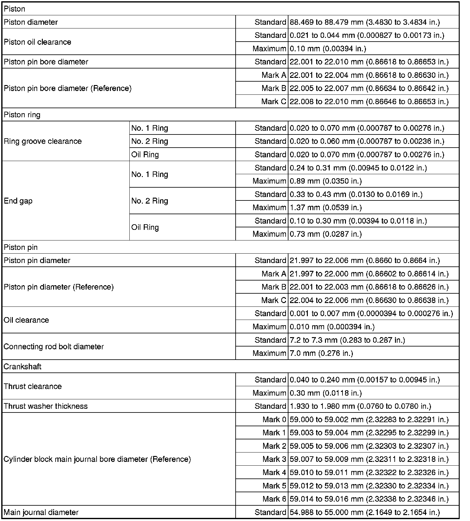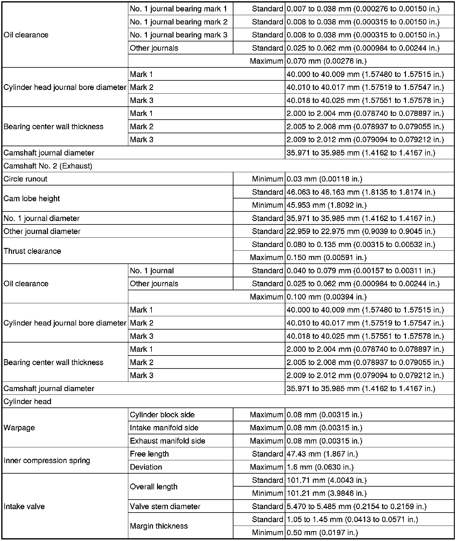 SPECIFICATIONS: 2AZ-FXE ENGINE MECHANICAL: SERVICE DATA