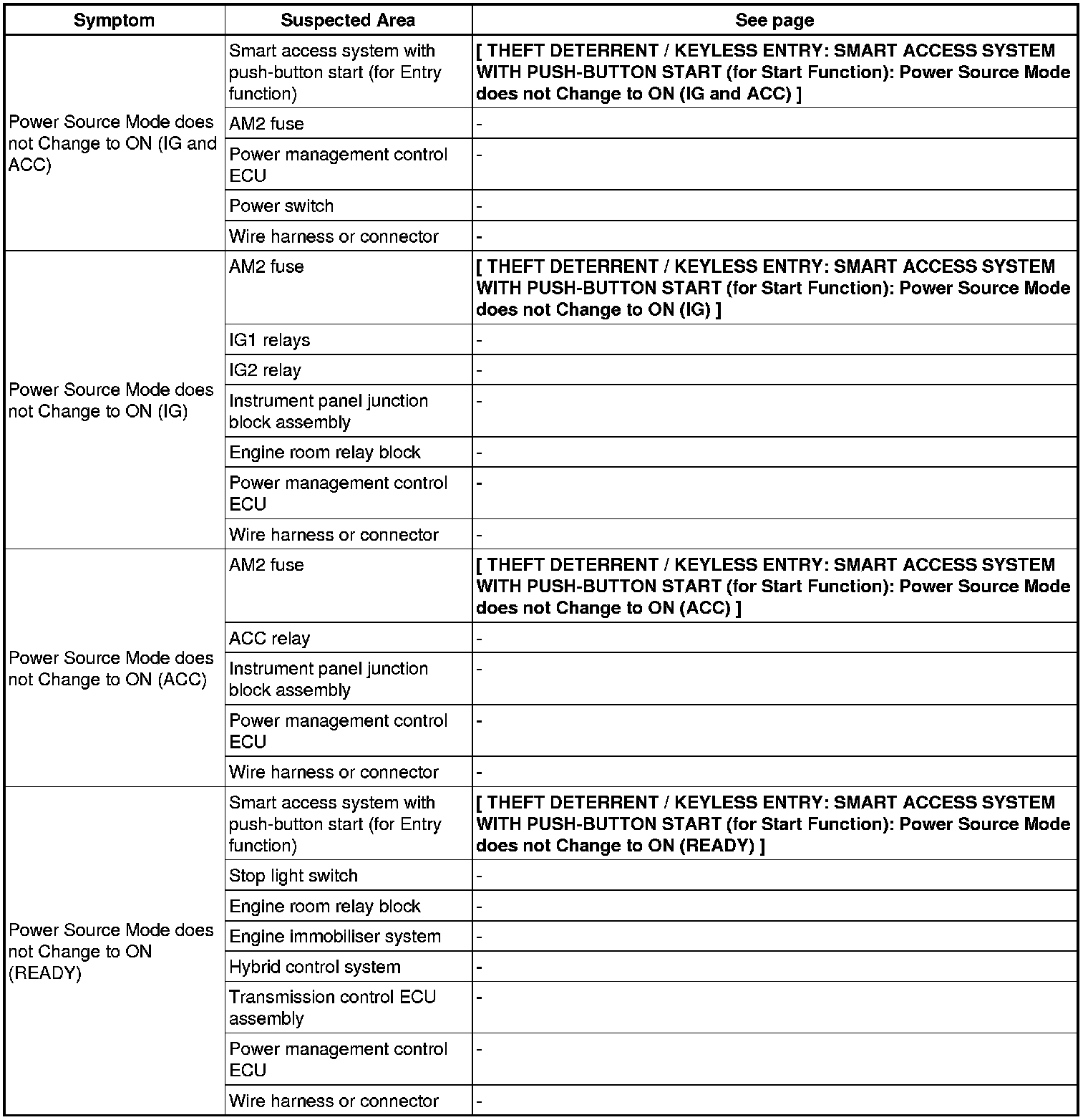 THEFT DETERRENT / KEYLESS ENTRY: SMART ACCESS SYSTEM WITH PUSH-BUTTON START (for Start Function): PROBLEM SYMPTOMS TABLE