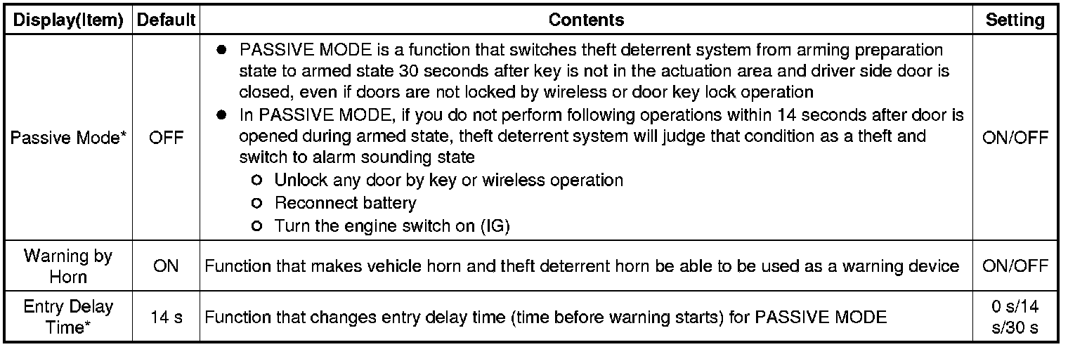 THEFT DETERRENT: THEFT DETERRENT SYSTEM: CUSTOMIZE PARAMETERS