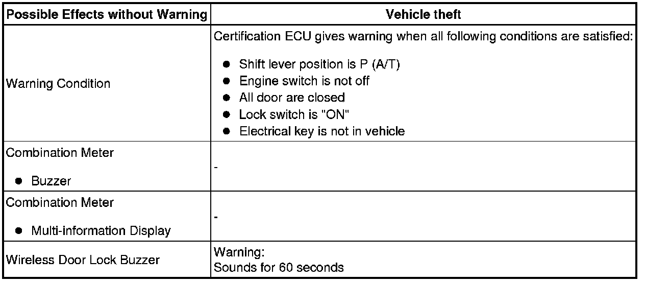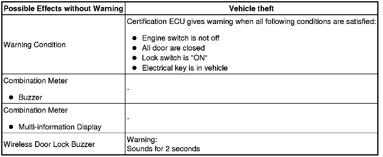 (d) If the electrical key is located inside of the cabin, the door lock function will not operate and the alarm buzzer (beep sound) will sound for 2 seconds.