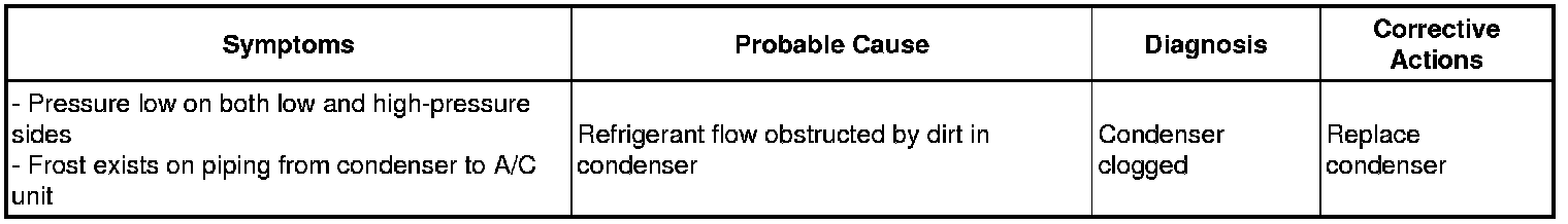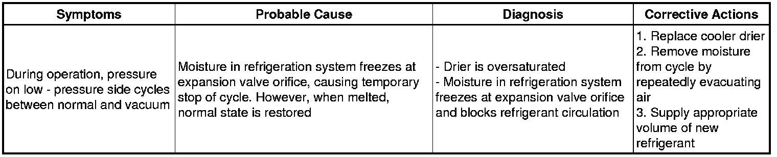 (2) The A/C system periodically changes between normal and improper function due to moisture in the refrigeration system.