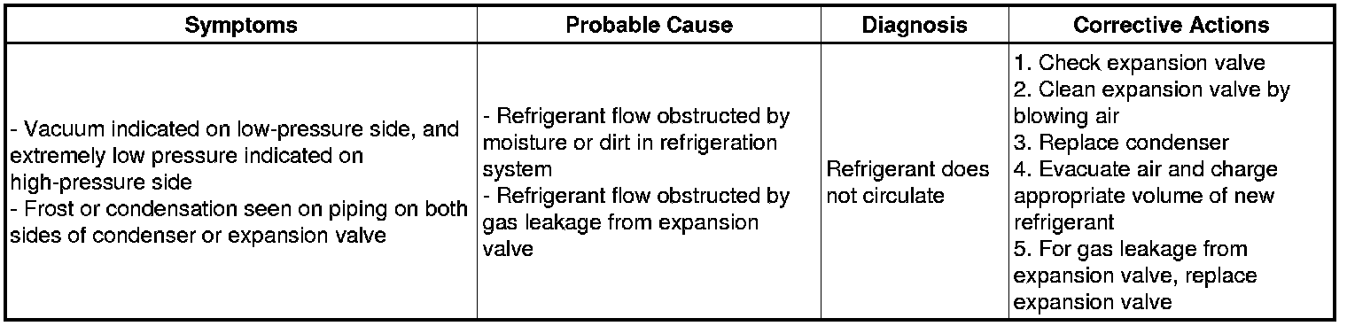 (4) The A/C system does not function effectively due to poor circulation of the refrigerant.